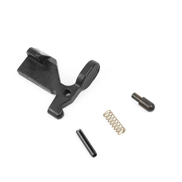 AR Mil Spec Bolt Catch Assembly. Contains the Bolt Catch, Roll Pin, Spring, and Buffer Detent